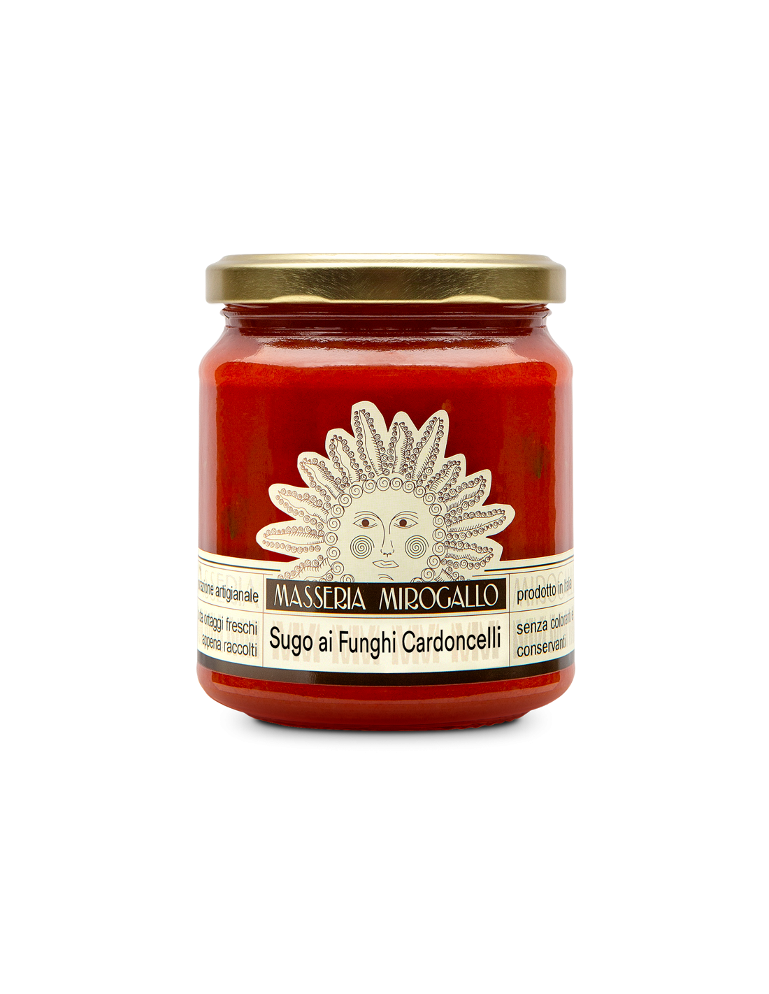 Passata di pomodori (79%), olio extravergine di oliva (12%), funghi cardoncelli (pleurotus eryngii) (6%), aglio, prezzemolo, sale, zucchero.